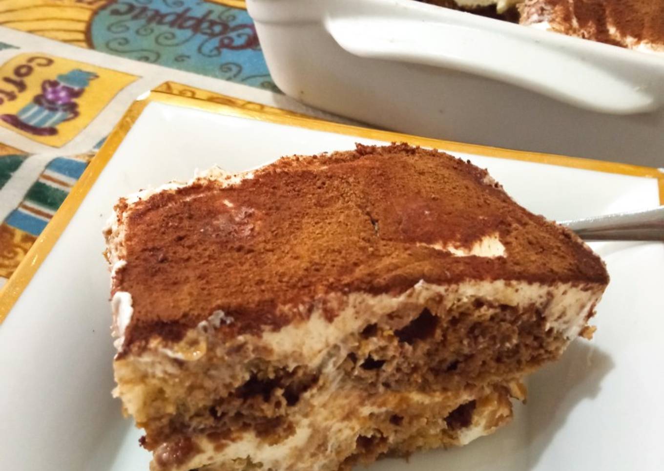 - Espolvorear la parte superior del postre con cacao en polvo utilizando un colador. Refrigerar durante aproximadamente 2-4 horas (se pone aún mejor en el refrigerador y es un postre perfecto para preparar con anticipación). Buen provecho.