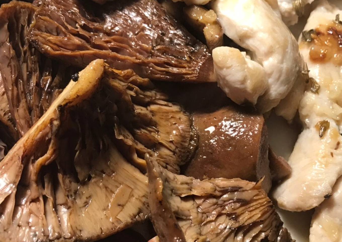 Esclatasangs (setas silvestres) con pechuga de pollo macerada