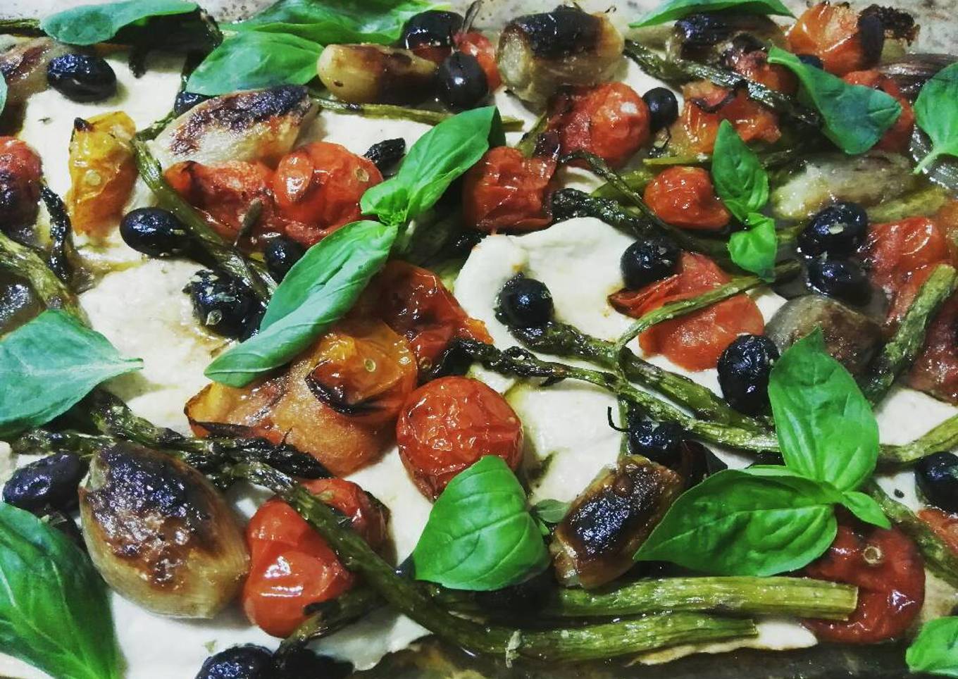- Por último añadiremos las hojas de albahaca una vez rertirada la bandeja del horno, el propio calor hará que la albahaca desprenda su aroma sin llegar a quemarse y sin perder frescura